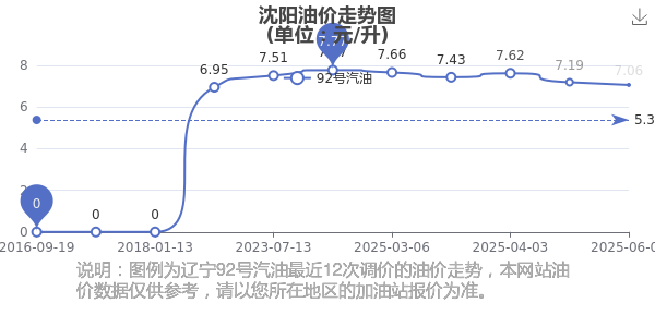 2025年沈陽汽油價格歷史走勢圖