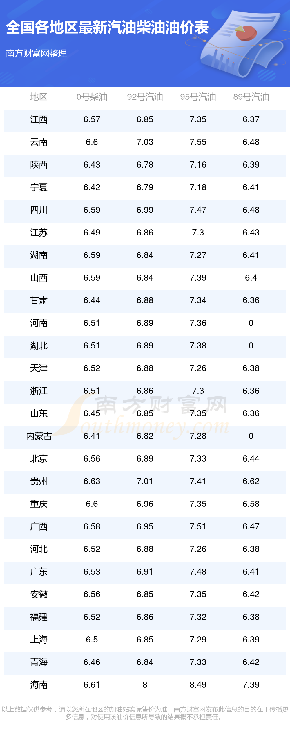 油價數(shù)據(jù)僅供參考,請以您所在地區(qū)的各加油站報價為準(zhǔn)。