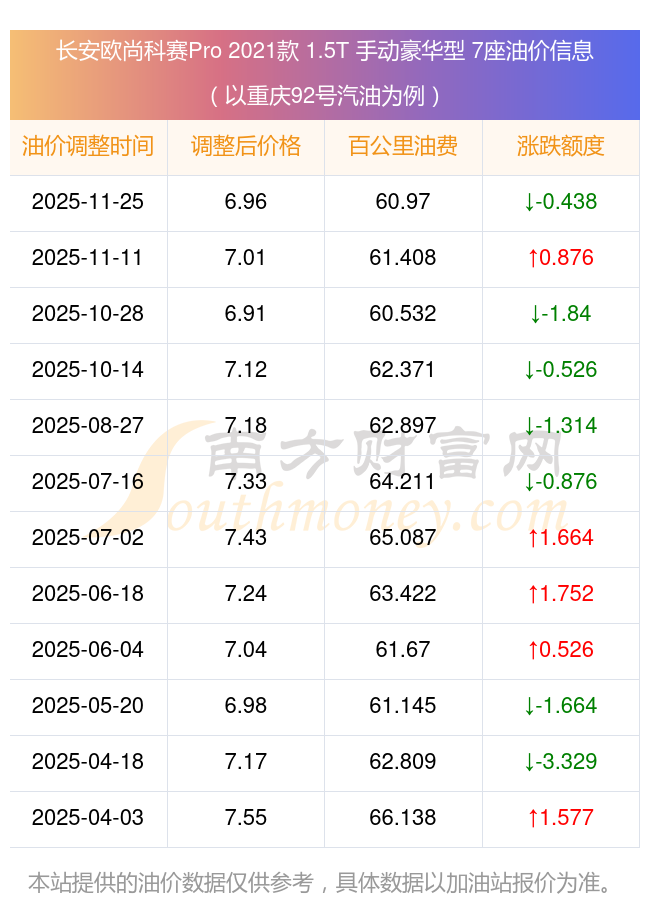 以上油耗數(shù)據(jù)由南方財(cái)富網(wǎng)整理提供,僅供參考。