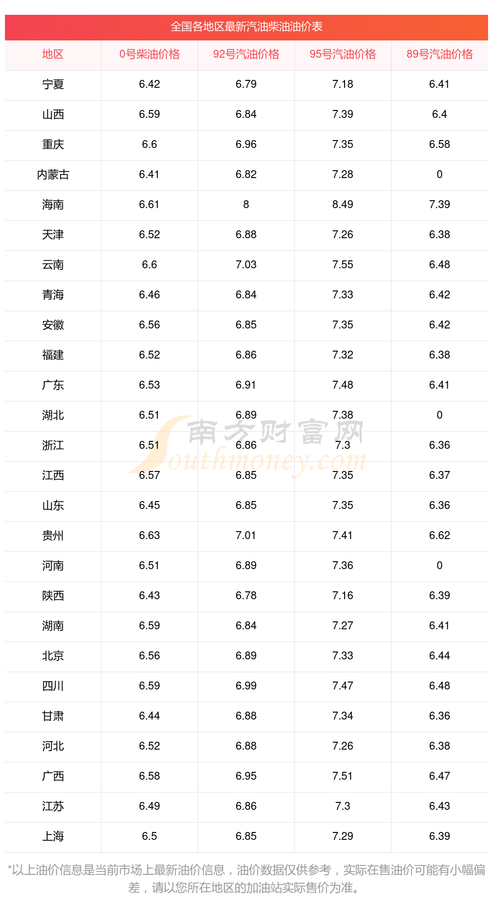 油價數(shù)據(jù)僅供參考,請以您所在地區(qū)的加油站報價為準。南方財富網(wǎng)發(fā)布此信息的目的在于傳播更多信息,對使用該油價信息所導致的結(jié)果概不承擔任何責任。