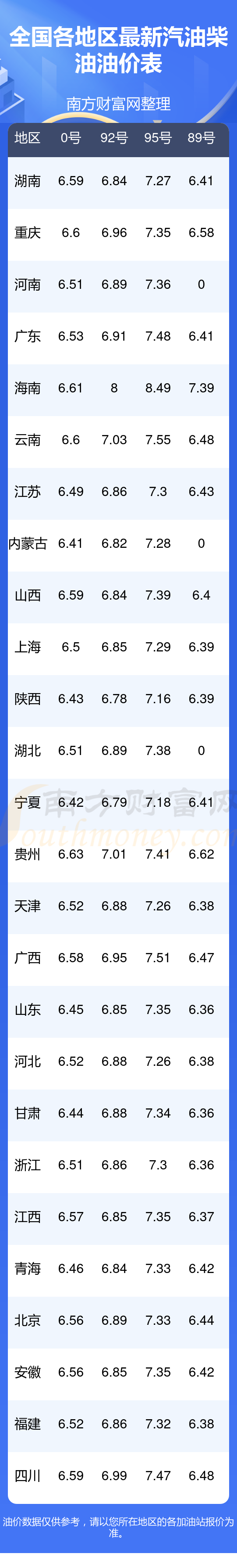 油價(jià)數(shù)據(jù)僅供參考,請以您所在地區(qū)的加油站報(bào)價(jià)為準(zhǔn)。南方財(cái)富網(wǎng)發(fā)布此信息的目的在于傳播更多信息,對使用該油價(jià)信息所導(dǎo)致的結(jié)果概不承擔(dān)任何責(zé)任。