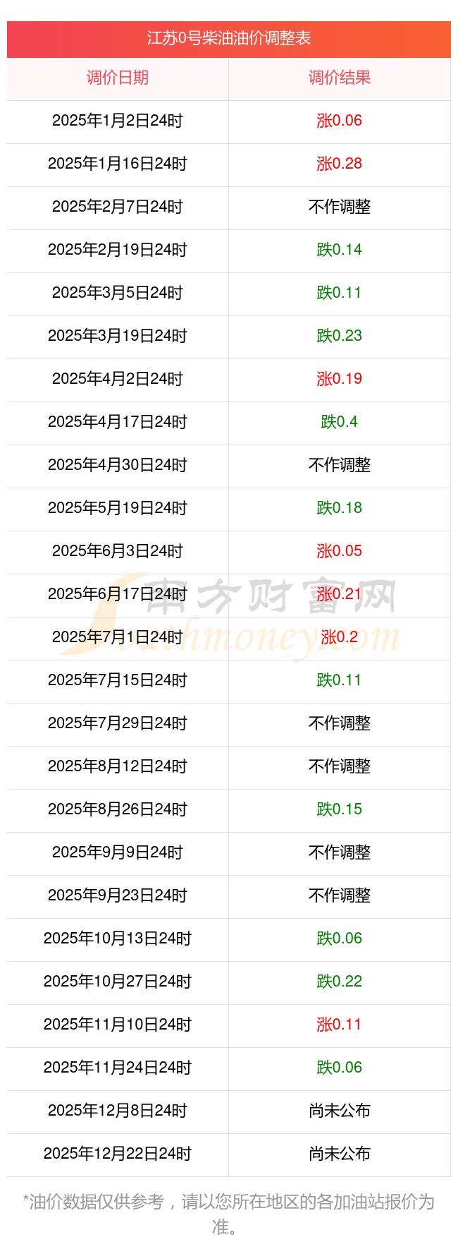 2025年油價(jià)調(diào)整時(shí)間及價(jià)格一覽表