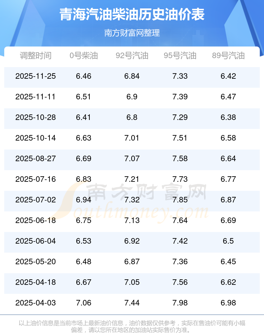 2025年青海汽油價(jià)格一覽表