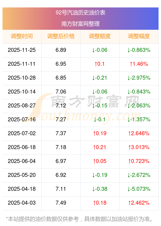 2025年油價調(diào)整時間及價格一覽表