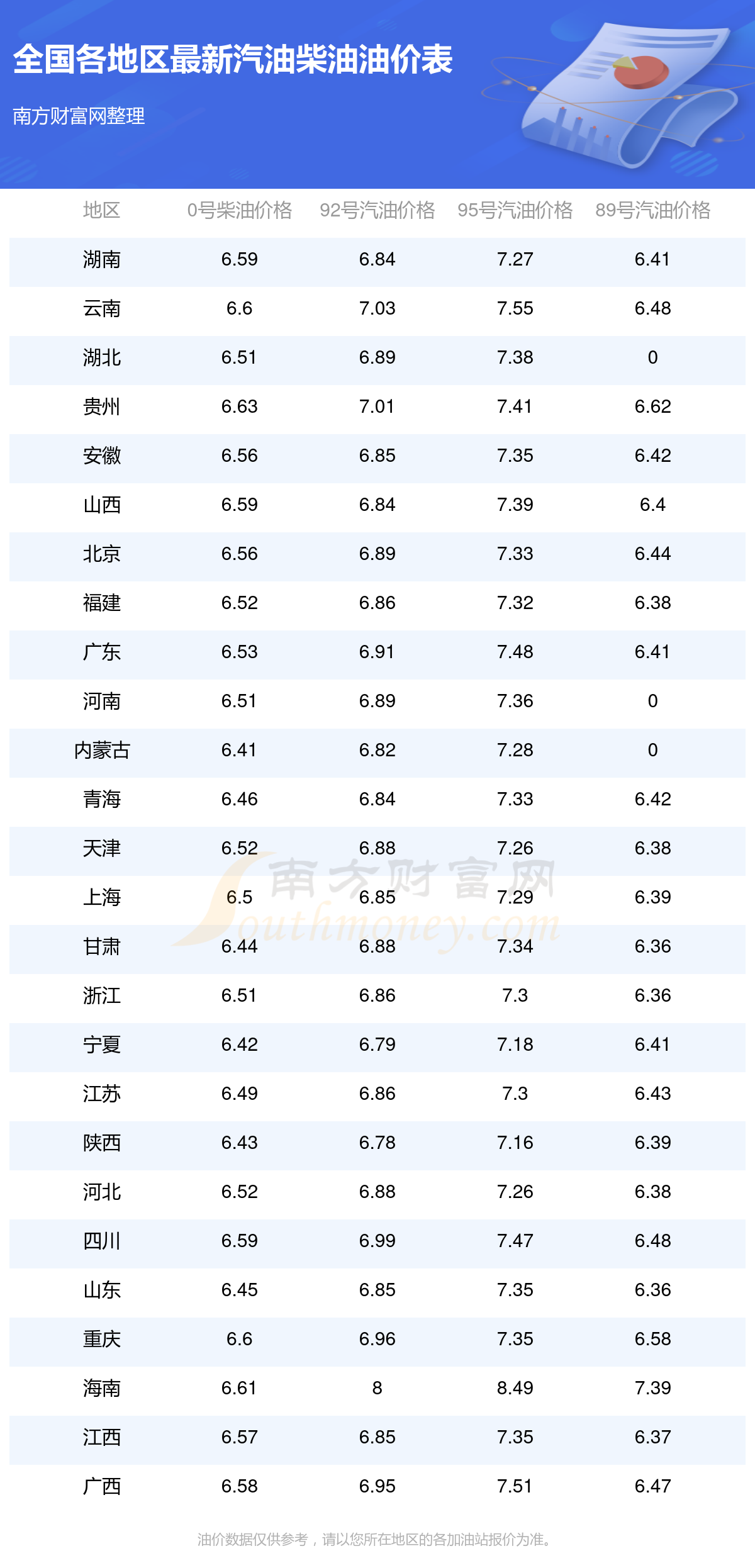 附:最新全國(guó)汽油、柴油價(jià)格一覽表