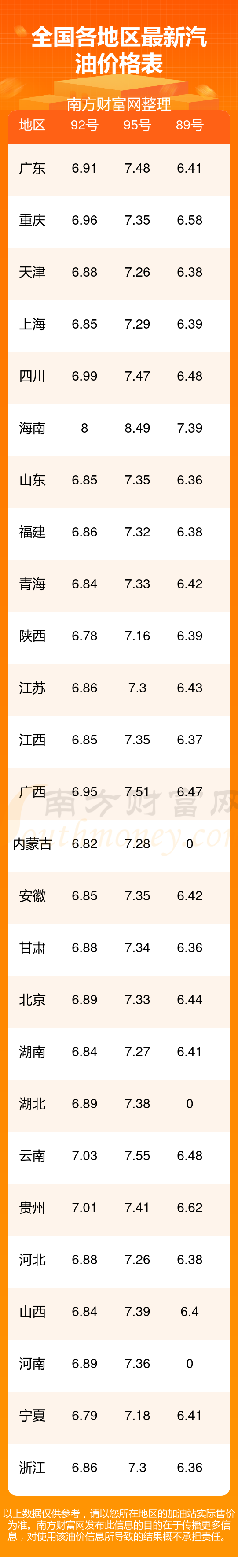 本次油價(jià)的調(diào)整時(shí)間為11月25日,調(diào)整后全國(guó)92號(hào)汽油平均價(jià)格為7元每升,其中,最低的是陜西,6.78元每升,最高的是海南,8.00元每升。全國(guó)95號(hào)汽油平均價(jià)格為7元每升,其中,最低的是陜西,7.16元每升,最高的是海南,8.49元每升。全國(guó)0號(hào)柴油平均價(jià)格為:7元每升,其中,最低的是內(nèi)蒙古,6.41元每升,最高的是貴州,6.63元每升。全國(guó)89號(hào)汽油平均價(jià)格為6元每升,其中,最低的是浙江,6.36元每升,最高的是海南,7.39元每升。,下一輪油價(jià)調(diào)整時(shí)間12月8日24時(shí),距離現(xiàn)在還有5.59天。
