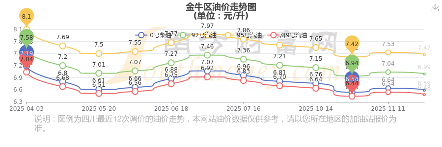金牛區(qū)12月3日0號柴油歷史油價調(diào)整走勢圖