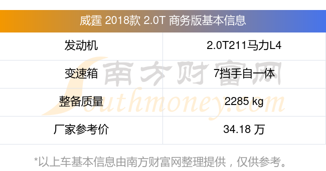 在動(dòng)力上,威霆 2018款 2.0T 商務(wù)版配備的是一臺(tái)2.0T211馬力L4渦輪增壓發(fā)動(dòng)機(jī),匹配的是7擋手自一體自動(dòng)檔變速箱,燃料形式為汽油,常規(guī)整備質(zhì)量2285kg,廠家參考價(jià)34.18萬(wàn)元。