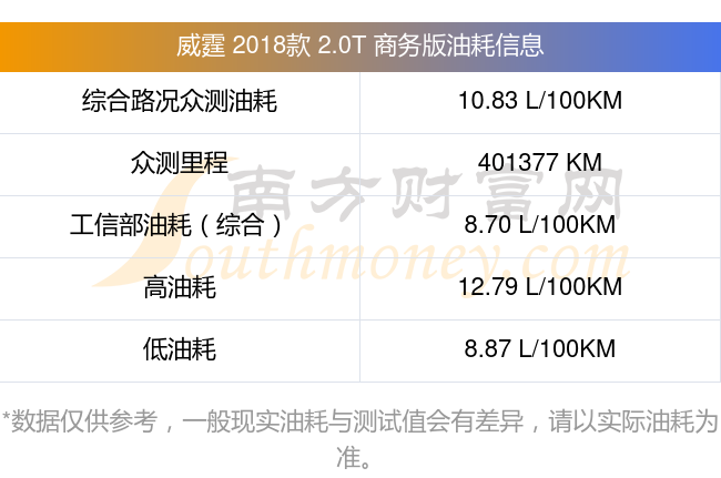 根據(jù)多位車(chē)主實(shí)測(cè)得出數(shù)據(jù),該車(chē)型低油耗為8.87升每百公里,高油耗為12.79升每百公里,綜合路況眾測(cè)油耗為10.83升每百公里,工信部綜合油耗為8.70升每百公里。