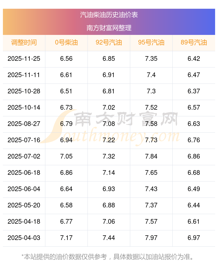 12月3日,安徽合肥95號汽油最新價格為:7.35元每升,調(diào)整時間為11月25日,相對上次調(diào)整時間11月11日的油價7.4元每升,下跌了0.05元,下跌幅達0.676%。下一輪油價調(diào)整時間12月8日24時,距離現(xiàn)在還有5.58天。