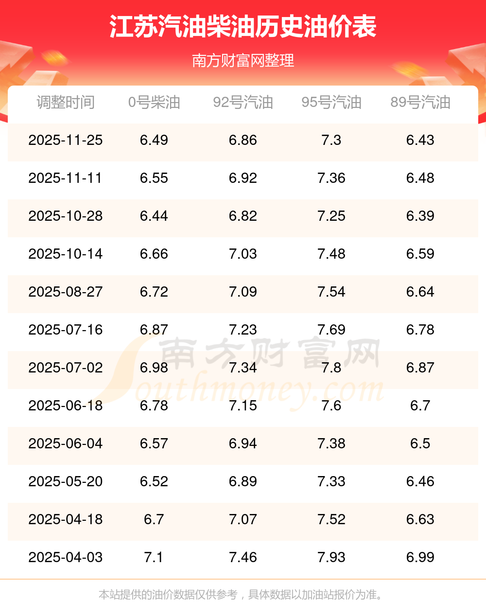 2025年江蘇汽油價(jià)格一覽表