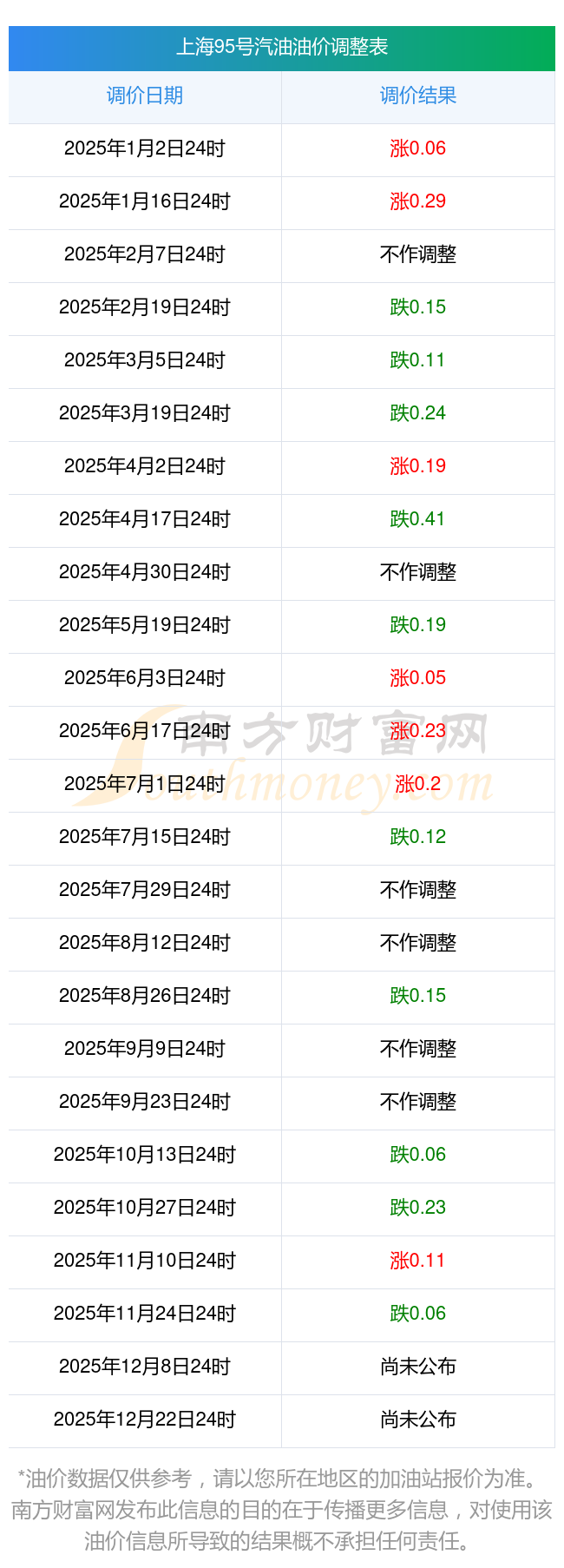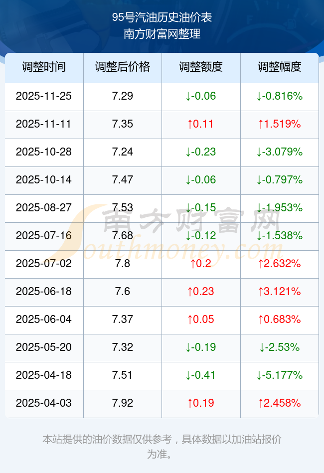2025年油價(jià)調(diào)整時(shí)間表及價(jià)格