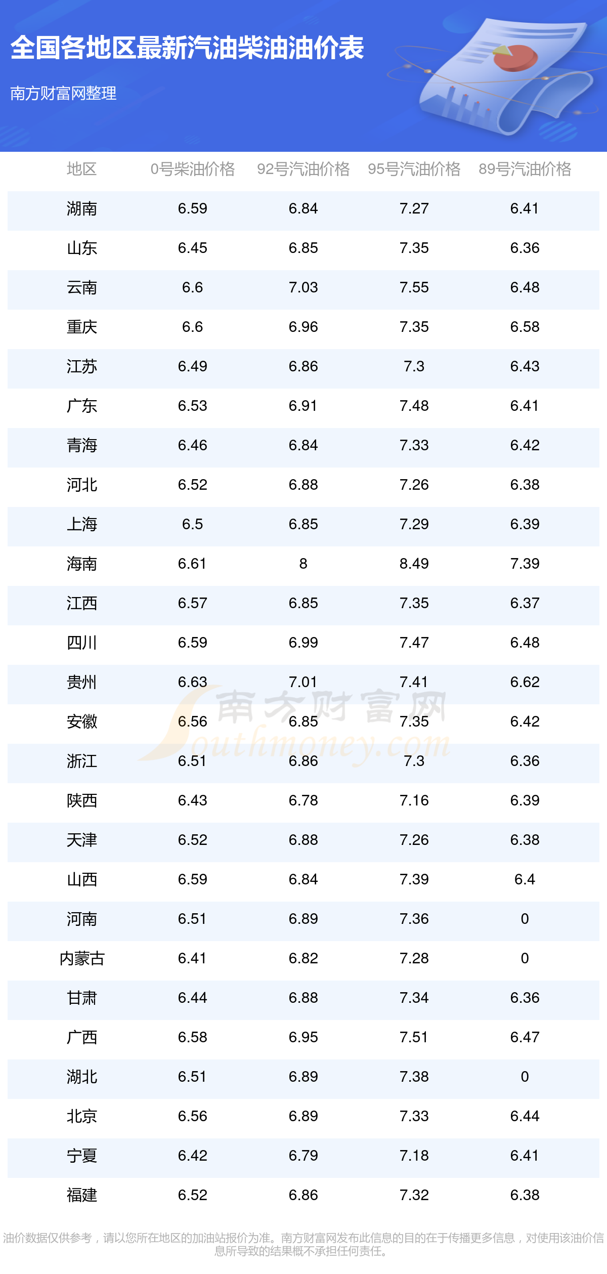 2025年12月3日全國(guó)各地汽油價(jià)格表一覽