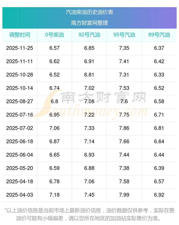 鷹潭汽油、柴油12月3日價格多少錢一升?具體為:0號柴油為6.57元,降了0.05元;95號汽油為7.35元;92號汽油為6.85元;89號汽油為6.37元,調(diào)整時間為11月25日。下一輪油價調(diào)整時間12月8日24時,距離現(xiàn)在還有5.56天。