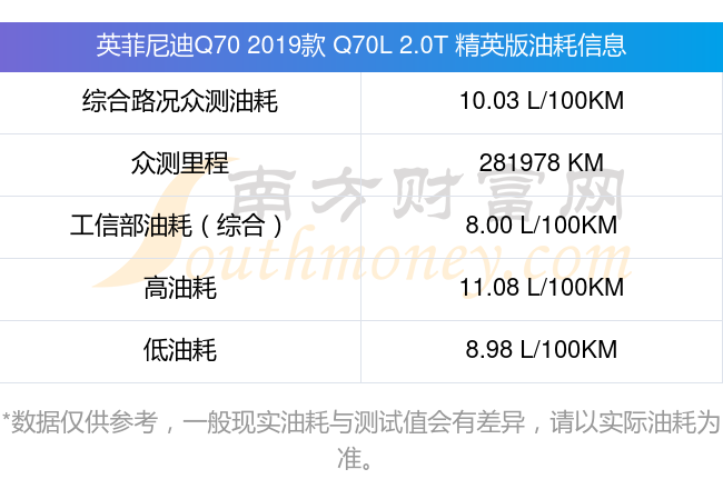 根據(jù)車主實(shí)測數(shù)據(jù),該車型低油耗為8.98升每百公里,高油耗為11.08升每百公里,綜合路況眾測油耗為10.03升每百公里,工信部綜合油耗為8.00升每百公里。