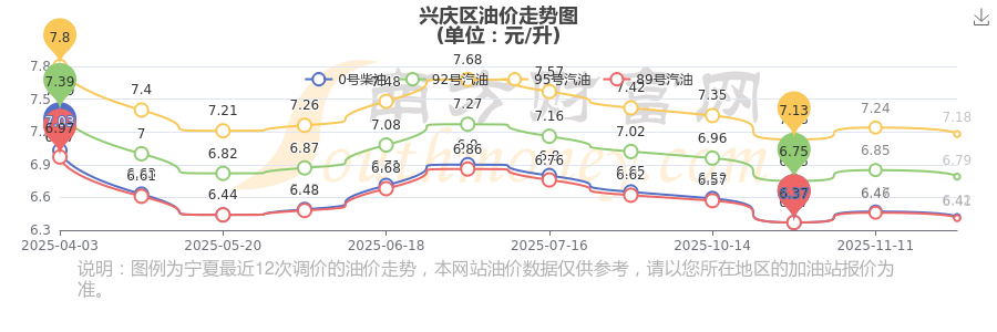 興慶區(qū)12月3日92號汽油歷史油價調(diào)整走勢圖