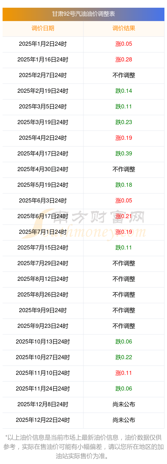 2025年蘭州油價(jià)調(diào)整日歷時(shí)間表