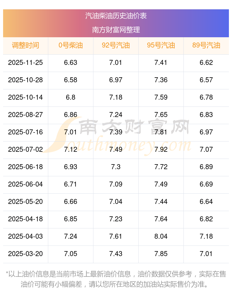 2025年汽油柴油油價調(diào)整一覽表