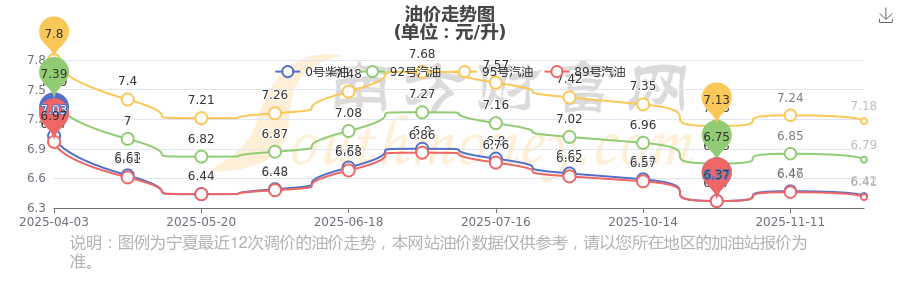 中衛(wèi)95號汽油12月3日最新價格為7.18元每升,本輪油價調(diào)整時間為11月25日,相對上次調(diào)整時間11月11日的油價7.24元每升,共下調(diào)了0.06元,下調(diào)0.829%。下一輪油價調(diào)整時間12月8日24時,距離現(xiàn)在還有5.54天。