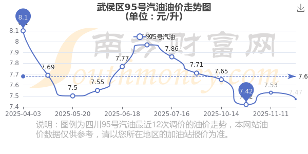 武侯區(qū)95號汽油歷史油價走勢圖