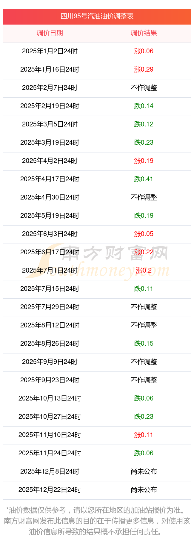2025年該省油價調(diào)整日歷表