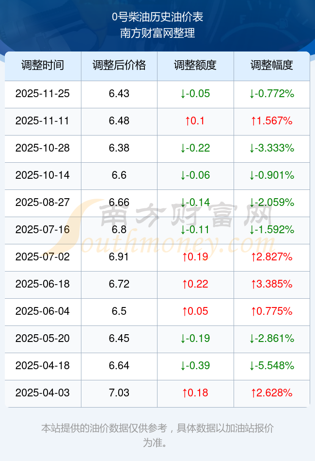 2025年油價(jià)調(diào)整時(shí)間表及價(jià)格