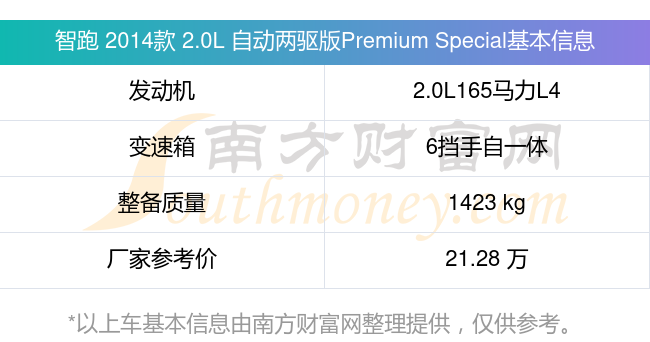智跑 2014款 2.0L 自動兩驅(qū)版Premium Special動力方面,搭載的是一臺2.0L165馬力L4自然吸氣發(fā)動機(jī),匹配6擋手自一體自動檔變速箱,燃料形式為汽油,常規(guī)整備質(zhì)量1423kg,廠家參考價21.28萬元。