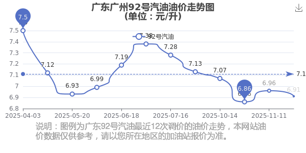 廣東廣州2025年汽油價格調(diào)整走勢圖