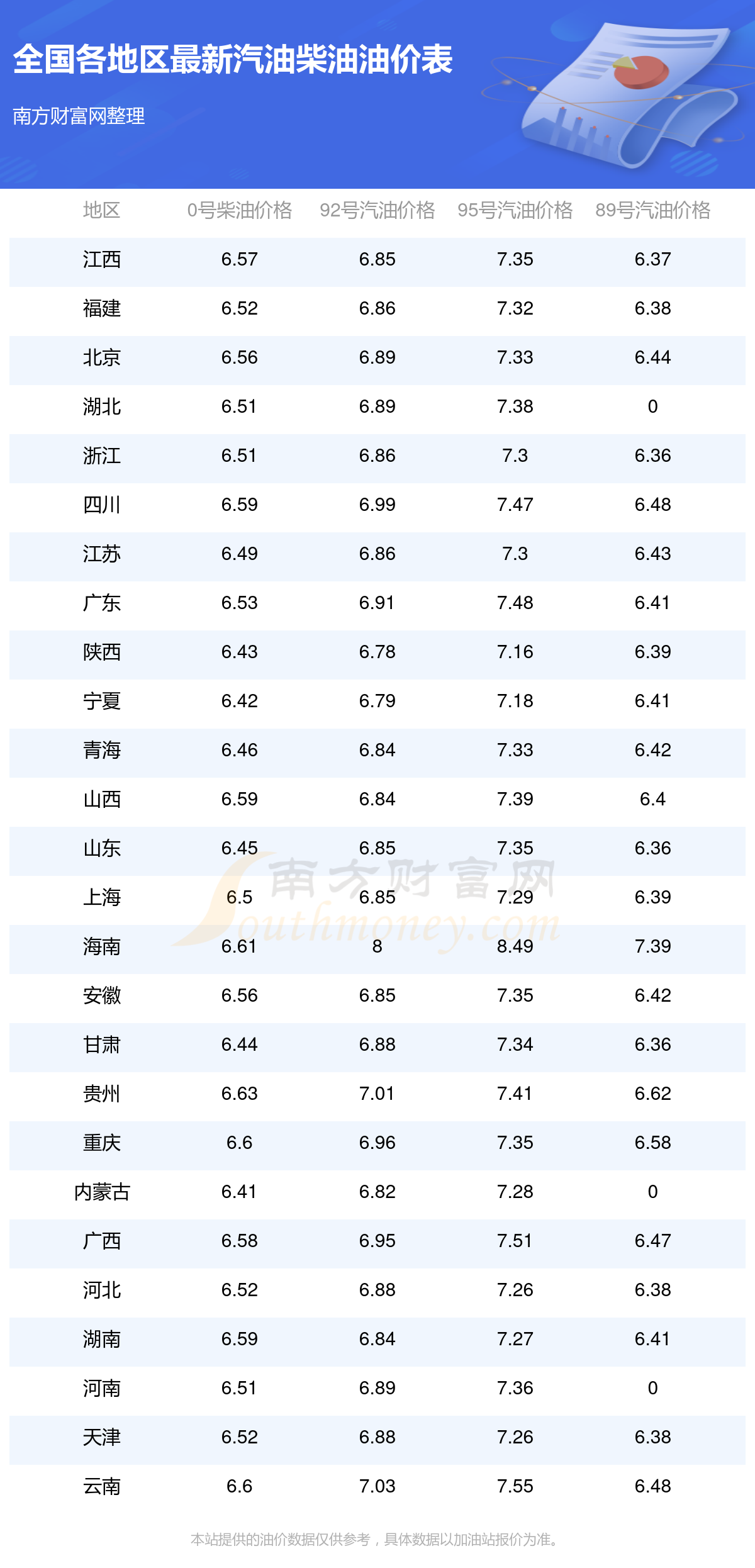 12月3日全國(guó)92、95汽油最新價(jià)格表