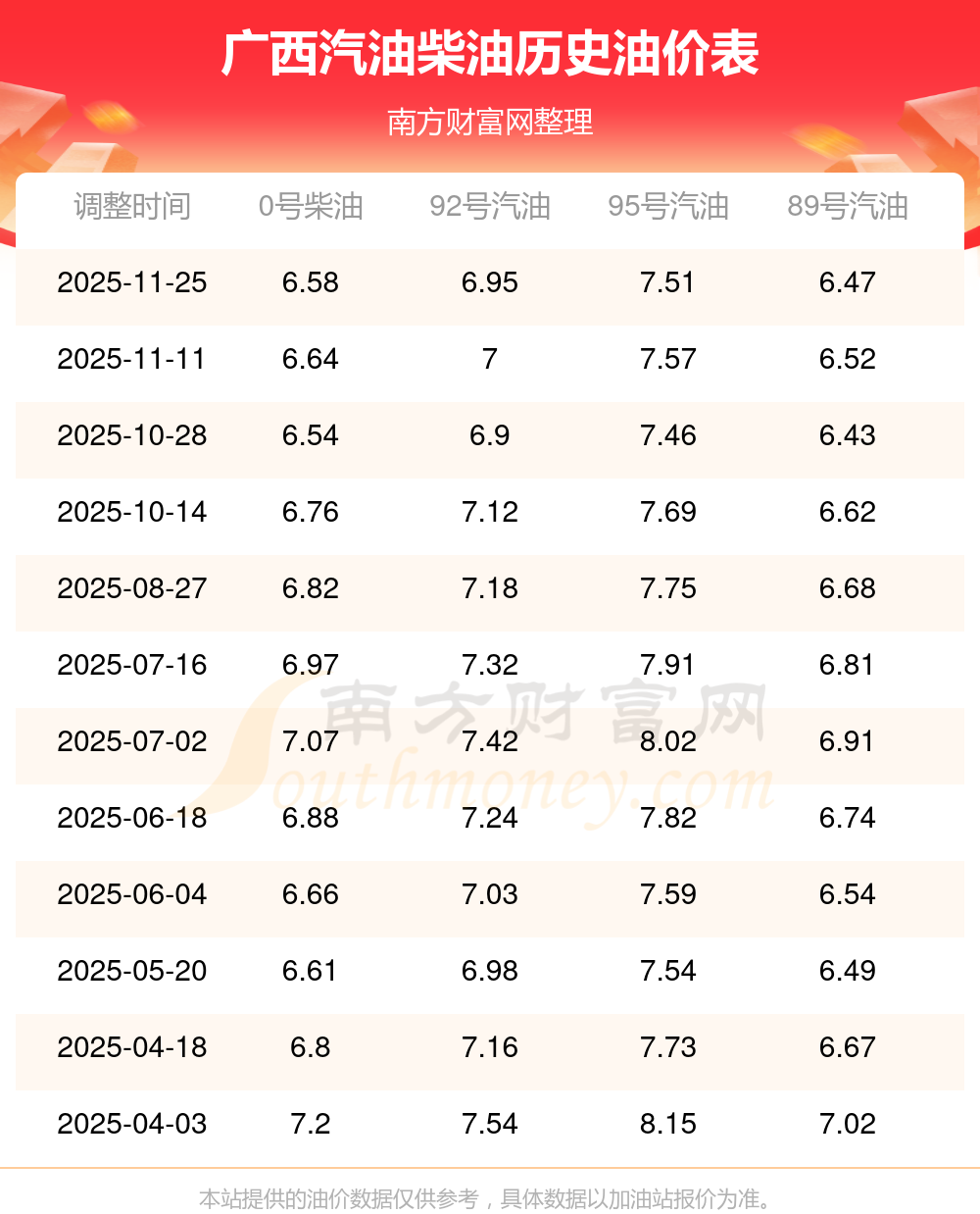 2025年廣西汽油價(jià)格一覽表