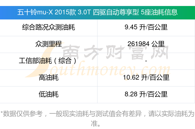 根據(jù)車主實測數(shù)據(jù),該車型低油耗為8.28升每百公里,高油耗為10.62升每百公里,綜合路況眾測油耗為9.45升每百公里。