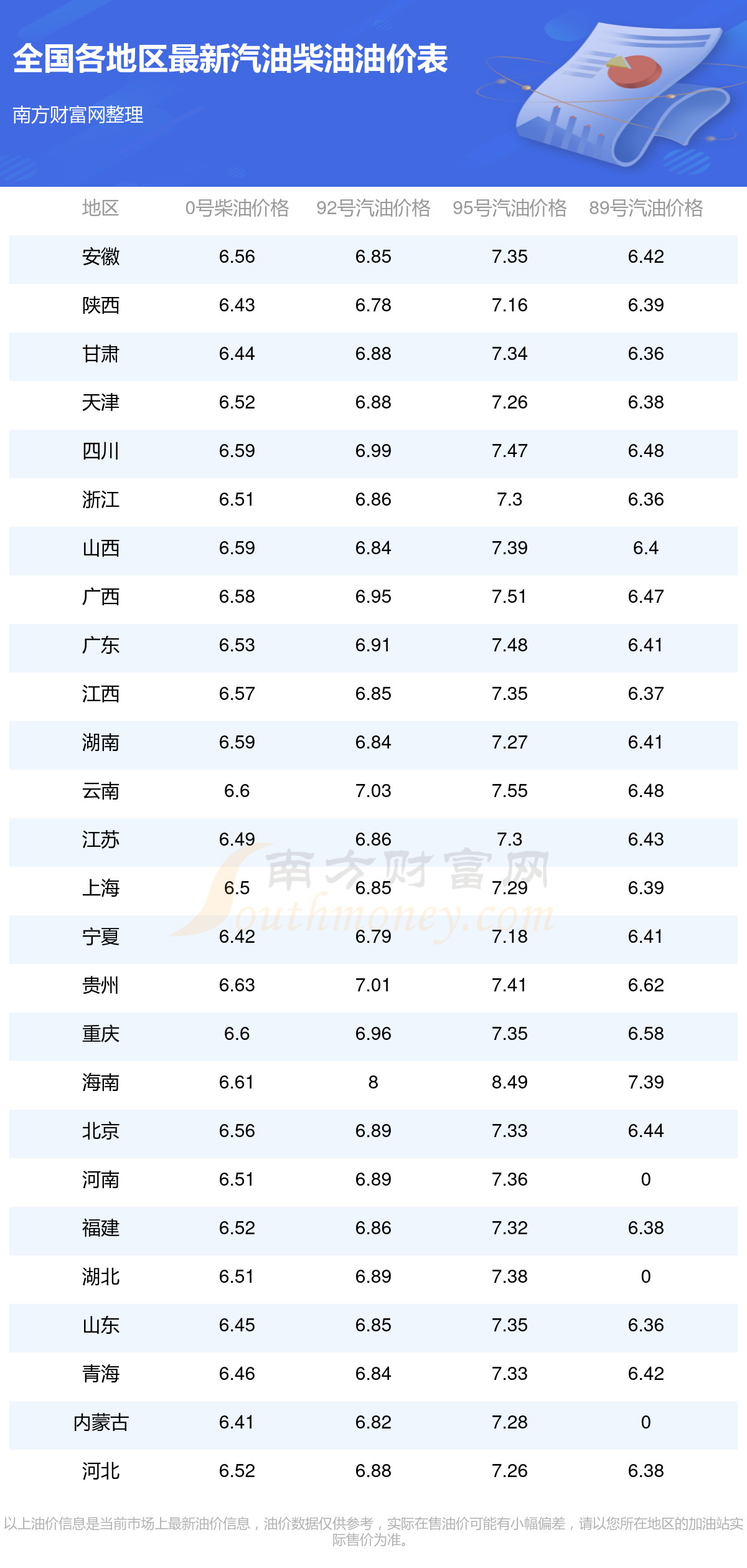 12月3日全國(guó)各地汽油今日油價(jià)?