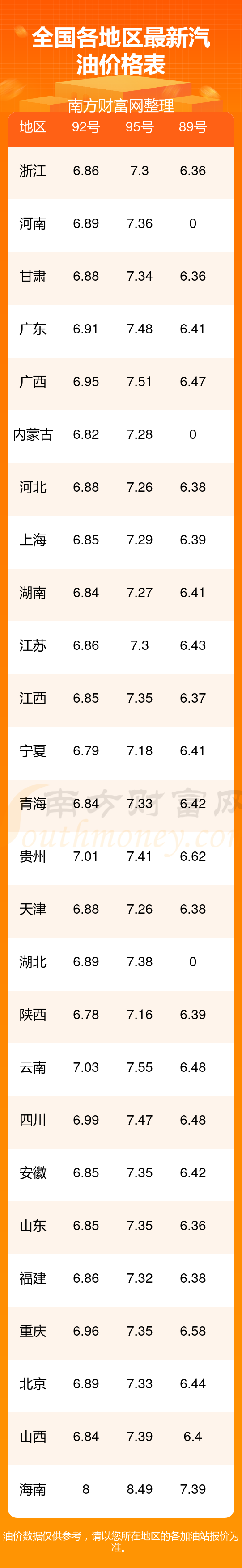 2025年全國各地區(qū)汽油價(jià)格表