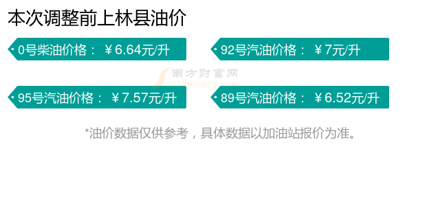 油價(jià)調(diào)整最新消息:上林縣汽油、柴油12月3日每升的價(jià)格為(油價(jià)調(diào)整時(shí)間是11月25日):92號(hào)汽油6.95元;95號(hào)汽油7.51元;89號(hào)汽油6.47元;0號(hào)柴油6.58元。下一輪油價(jià)調(diào)整時(shí)間12月8日24時(shí)。