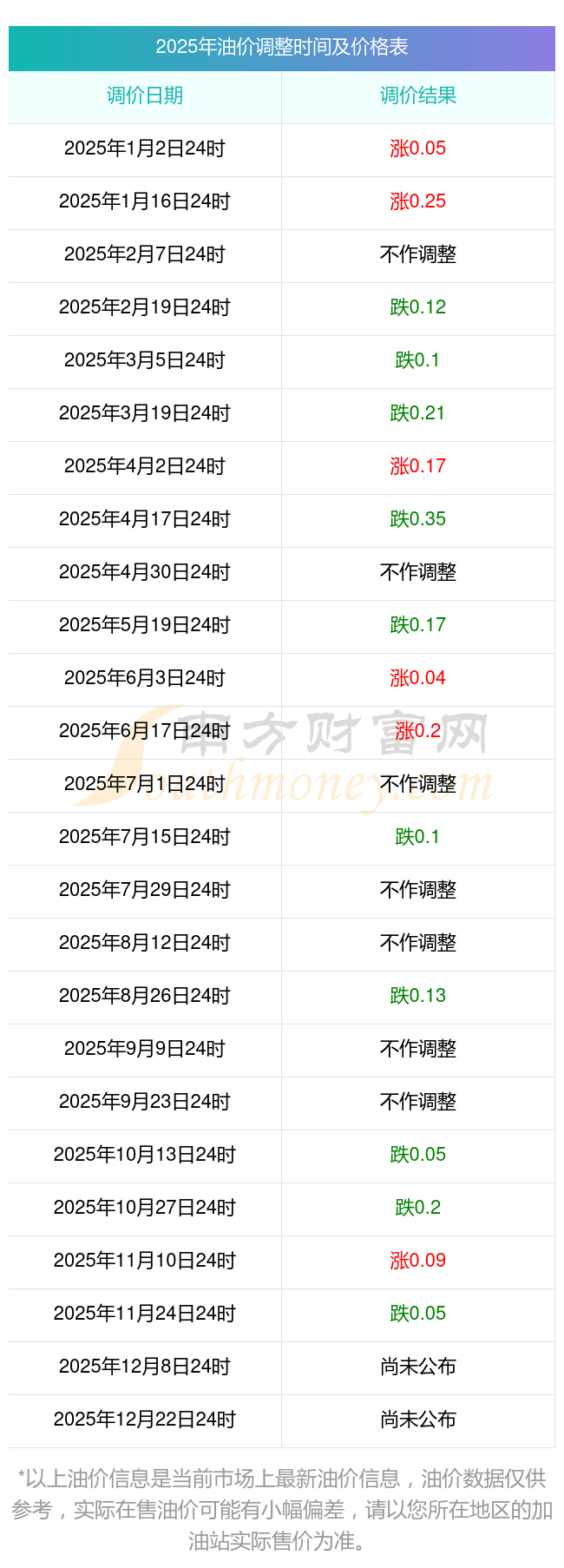 2025年浙江金華東陽市12月3日油價(jià)調(diào)整時間表