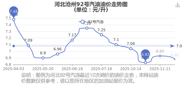 河北滄州最近調(diào)價(jià)的油價(jià)走勢(shì)圖