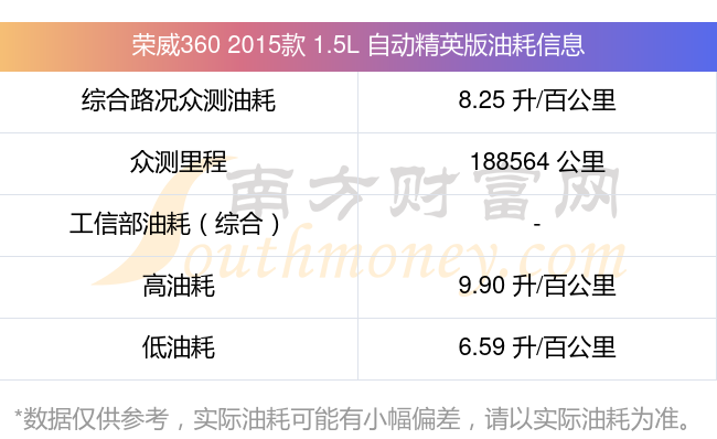根據(jù)多位車主實(shí)測(cè)得出數(shù)據(jù),該車型低油耗為6.59L/100km,高油耗為9.90L/100km,綜合路況眾測(cè)油耗為8.25L/100km,工信部綜合油耗為-L/100km。