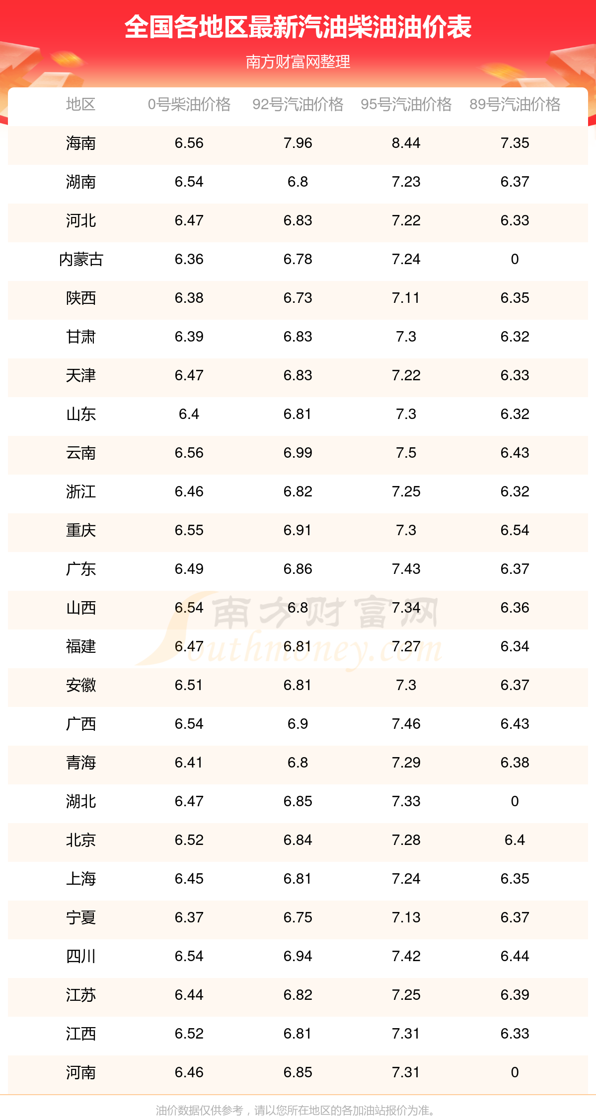 油價(jià)數(shù)據(jù)僅供參考,請以您所在地區(qū)的各加油站報(bào)價(jià)為準(zhǔn)。