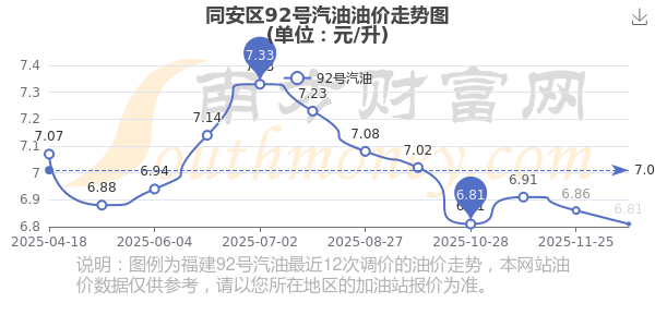 同安區(qū)92號汽油歷史油價走勢圖