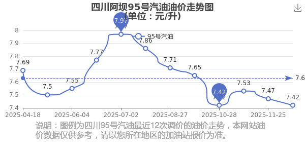四川阿壩最近調(diào)價的油價走勢圖