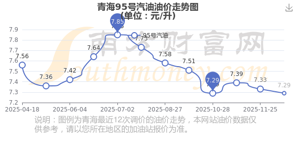 12月22日青海95號(hào)汽油價(jià)格為7.29元/升,調(diào)整時(shí)間為12月9日,相對(duì)上次調(diào)整時(shí)間11月25日的油價(jià)7.33元/升,跌了0.04元。