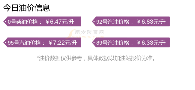 油價(jià)數(shù)據(jù)僅供參考,請以您所在地區(qū)的各加油站報(bào)價(jià)為準(zhǔn)。