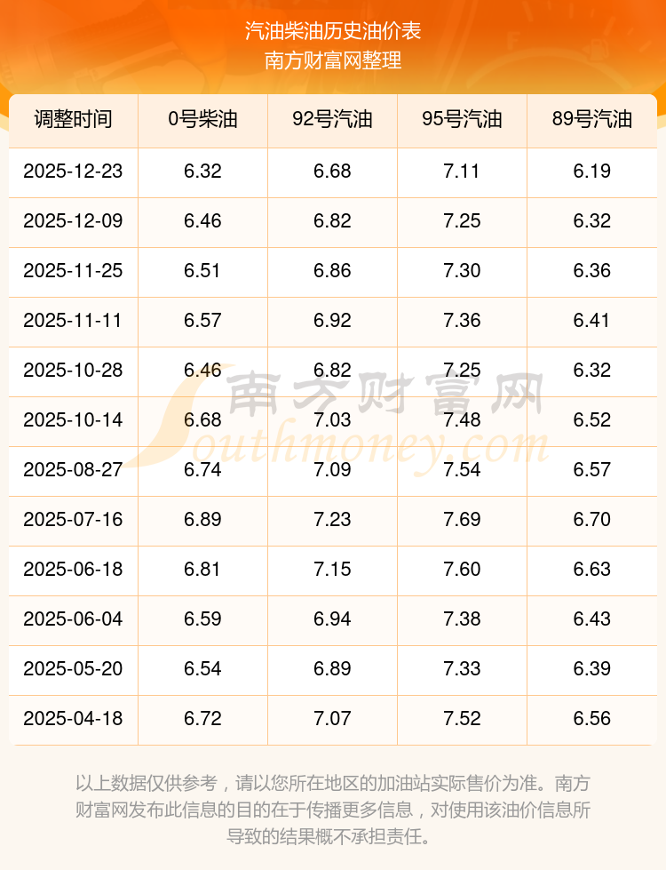 2025年95號汽油價格一覽表