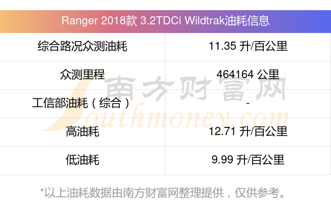 根據(jù)車主實(shí)測(cè)數(shù)據(jù),該車型低油耗為9.99升/百公里,高油耗為12.71升/百公里,綜合路況眾測(cè)油耗為11.35升/百公里。