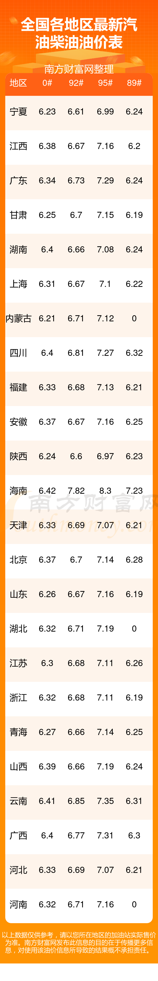 根據(jù)12月23日油價調(diào)整后的價格,全國89號汽油1月3日最新平均價格為每升6元,其中全國89號汽油最低為浙江,價格為6.19元/升,89號汽油最高為海南,價格為7.23元/升。,下一輪油價調(diào)整時間12月31日24時,距離現(xiàn)在還有0天。