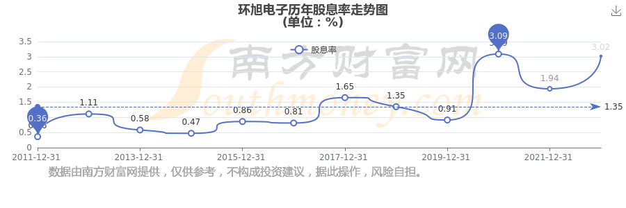 環(huán)旭電子歷年股息率走勢(shì)如下圖: