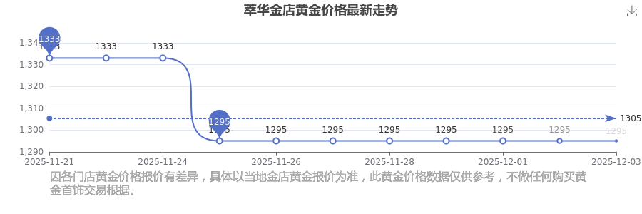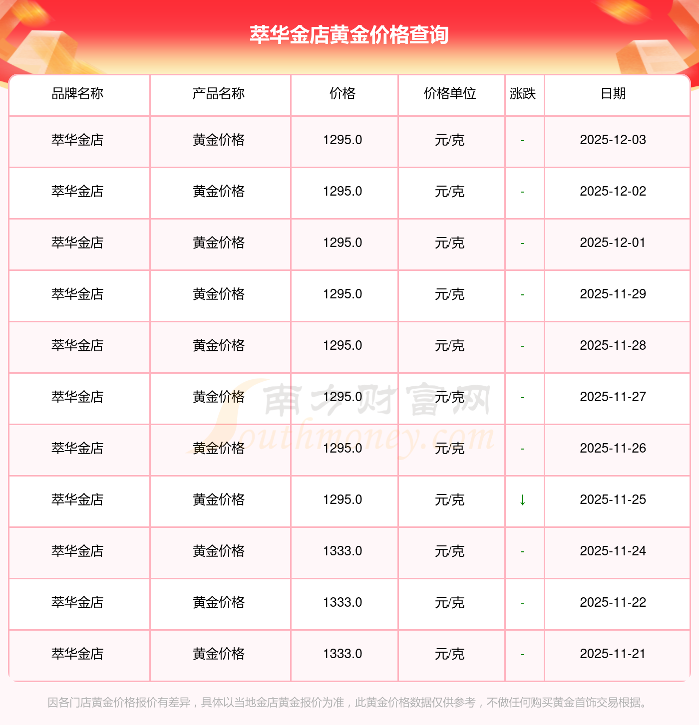 今日萃華金店 黃金價格,最新確定為1295.0元/克。