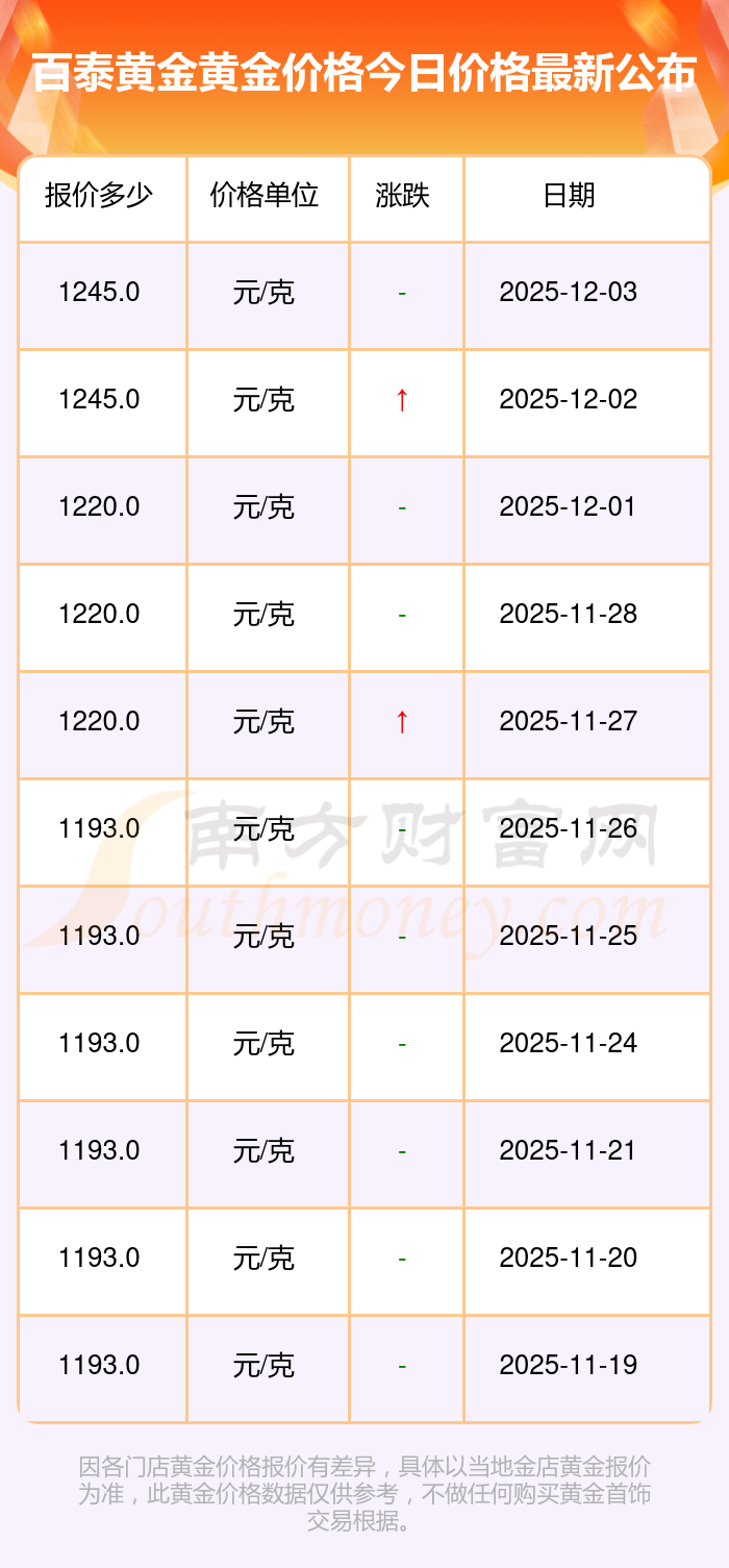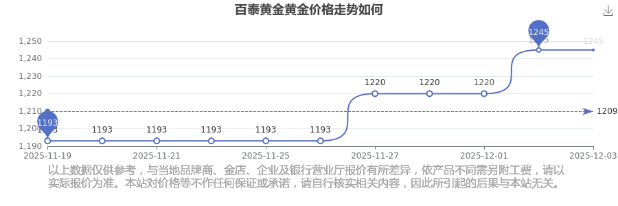 今日百泰黃金黃金價(jià)格最新查詢:1245.0元/克。