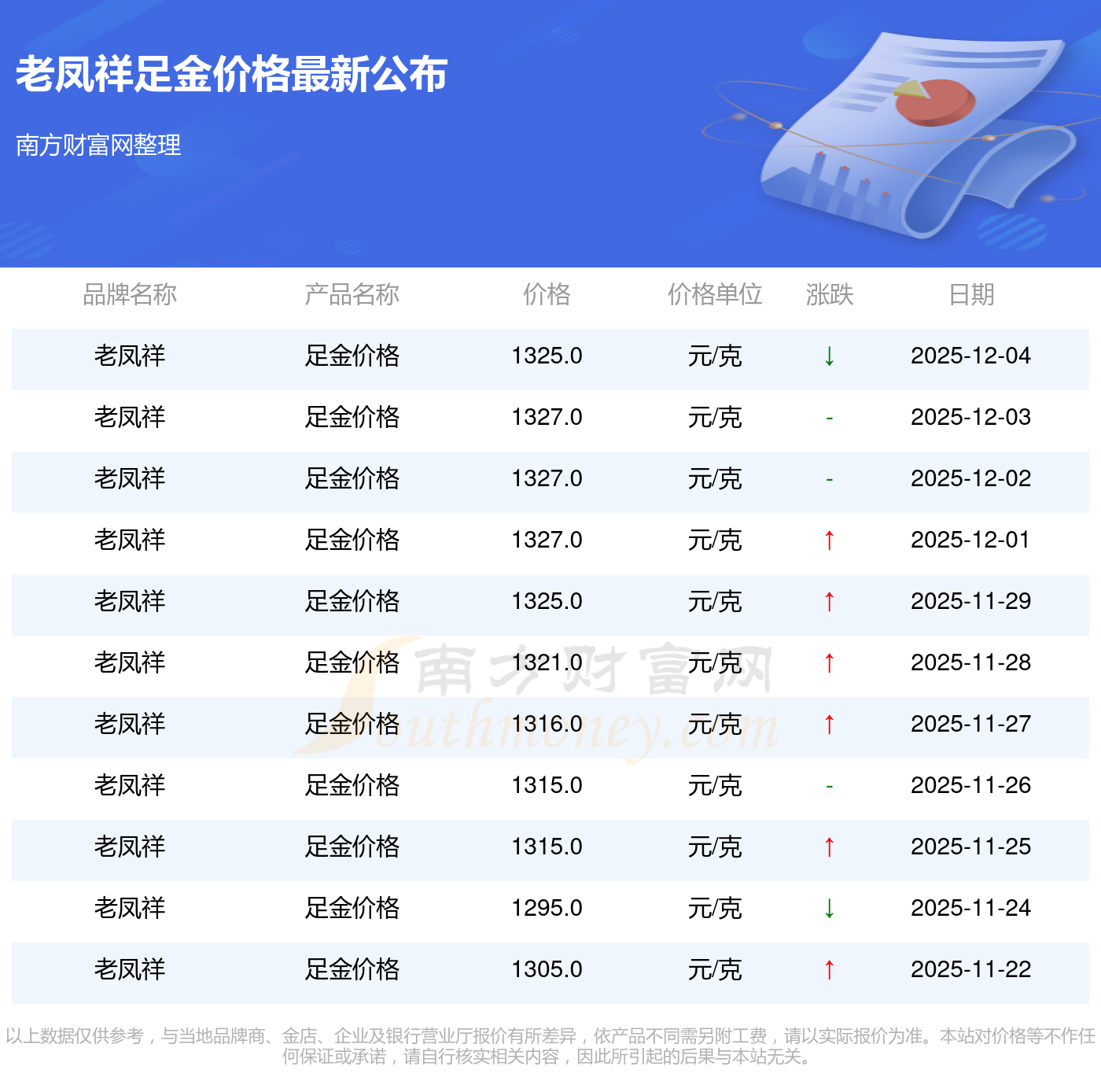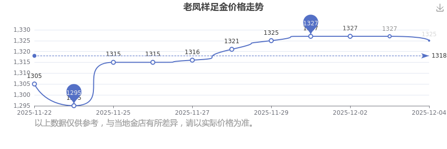 今日老鳳祥足金價格最新為1325.0元/克。
