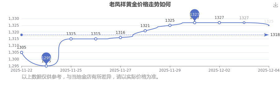 今天黃金價格是多少?現(xiàn)在黃金一克的價錢是怎樣的?通常情況下1克黃金的價錢是多少左右?今日老鳳祥黃金價格:1325.0元/克。
